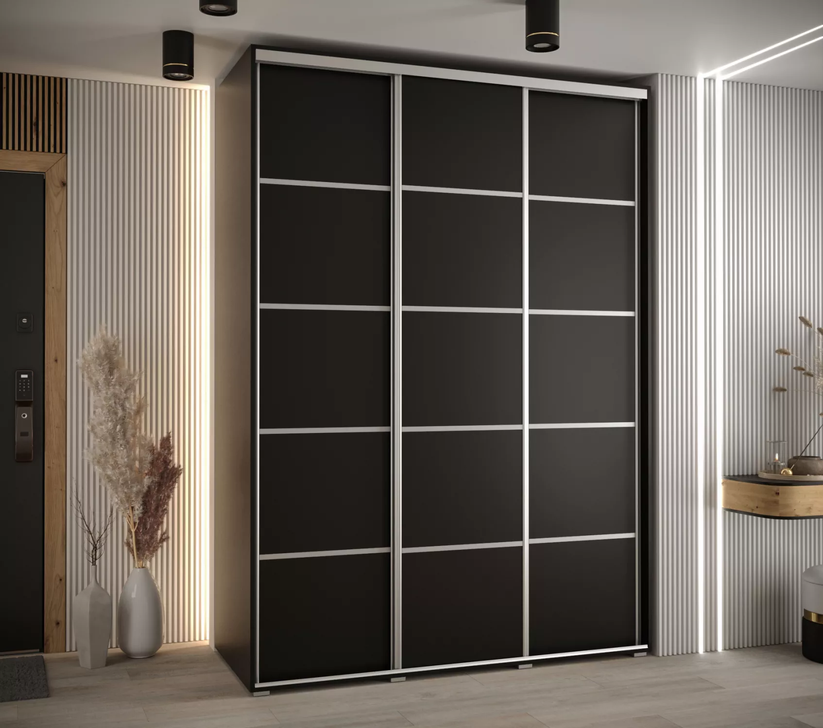 Šatníková skriňa ASIRI 4 - 180/60 cm, čierna / strieborná