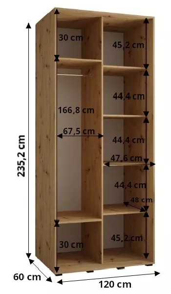 Šatníková skriňa ASIRI zaujme svojim moderným dizajnom a praktickými prvkami. Šatníková skriňa má posuvné dvere, ktoré sa neotvárajú do priestoru a ušetria tak veľa miesta.