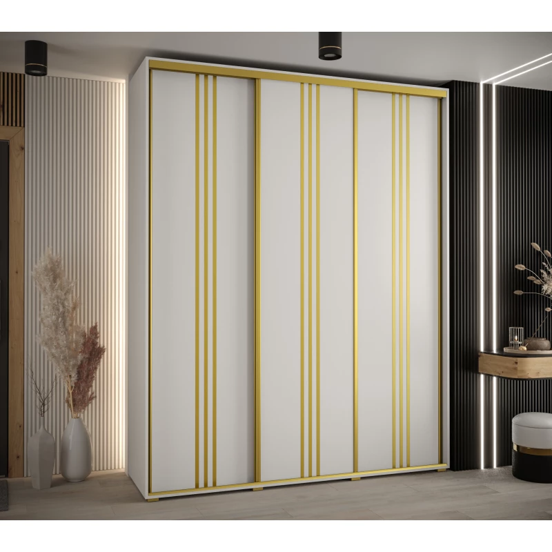 Šatníková skriňa ASIRI 6 - 200/60 cm, biela / zlatá