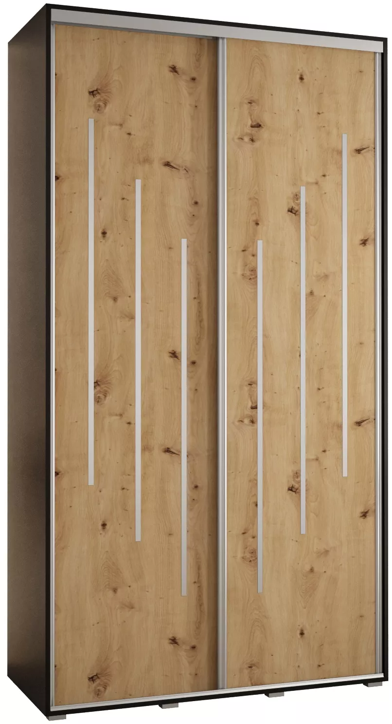 Šatníková skriňa ASIRI 8 - 140/60 cm, čierna / dub artisan / strieborná