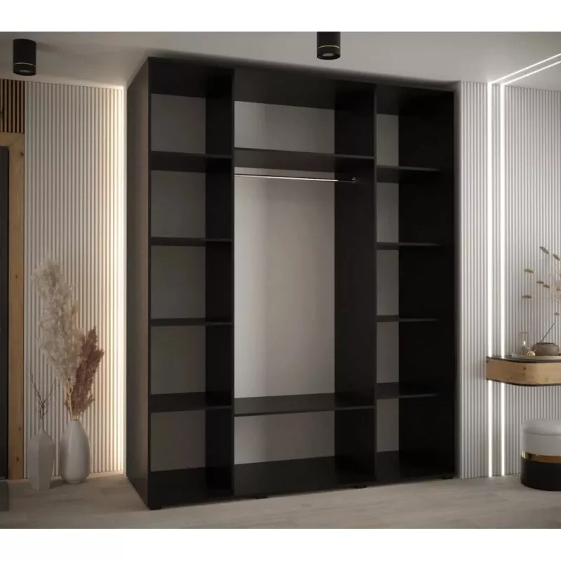 Šatníková skriňa ASIRI 8 - 200/60 cm, čierna / čierna