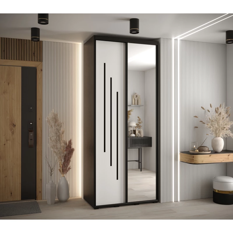 Šatníková skriňa ASIRI 9 - 100/60 cm, čierna / biela / čierna