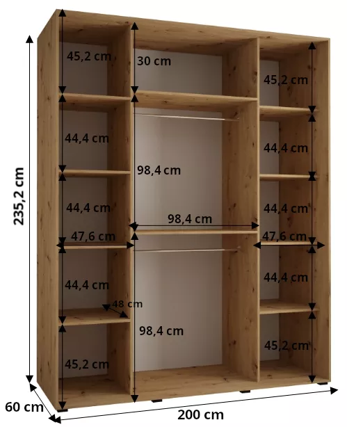 Šatníková skriňa ASIRI zaujme svojim moderným dizajnom a praktickými prvkami. Šatníková skriňa má posuvné dvere, ktoré sa neotvárajú do priestoru a ušetria tak veľa miesta.