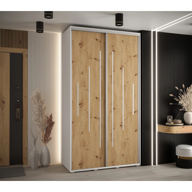 Šatníková skriňa ASIRI 12 - 130/60 cm, biela / dub artisan / strieborná