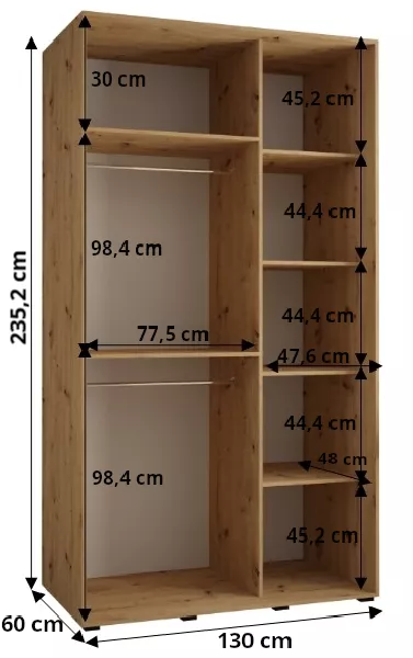 Šatníková skriňa ASIRI zaujme svojim moderným dizajnom a praktickými prvkami. Skriňa má posuvné dvere, ktoré sa neotvárajú do priestoru a ušetria tak veľa miesta. Vnútro skrine je možné usporiadať podľa vašich potrieb.