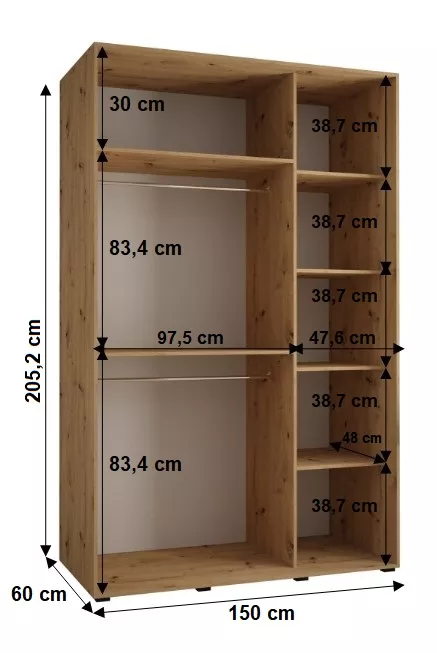 Šatníková skriňa YVONA upúta pozornosť každého, kto hľadá funkčné a štýlové riešenie do svojej spálne. Skriňa je vybavená posuvnými dverami pre ľahšiu manipuláciu.