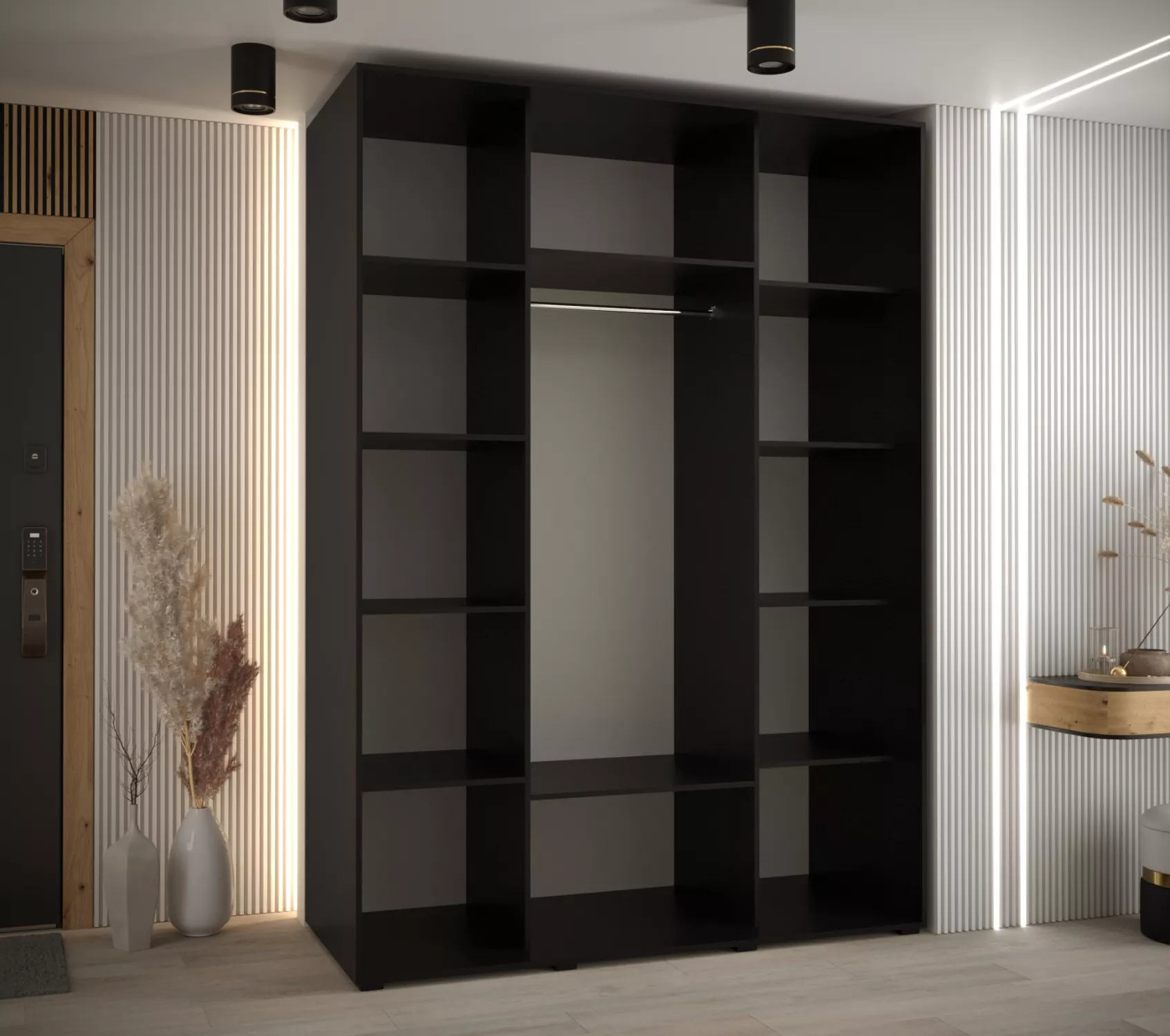 Šatníková skriňa YVONA upúta pozornosť každého, kto hľadá funkčné a štýlové riešenie do svojej spálne. Skriňa je vybavená posuvnými dverami pre ľahšiu manipuláciu.