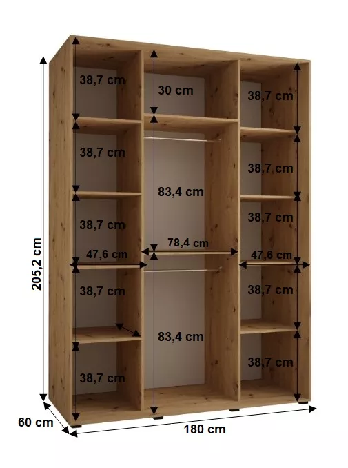 Šatníková skriňa YVONA upúta pozornosť každého, kto hľadá funkčné a štýlové riešenie do svojej spálne. Skriňa je vybavená posuvnými dverami pre ľahšiu manipuláciu.