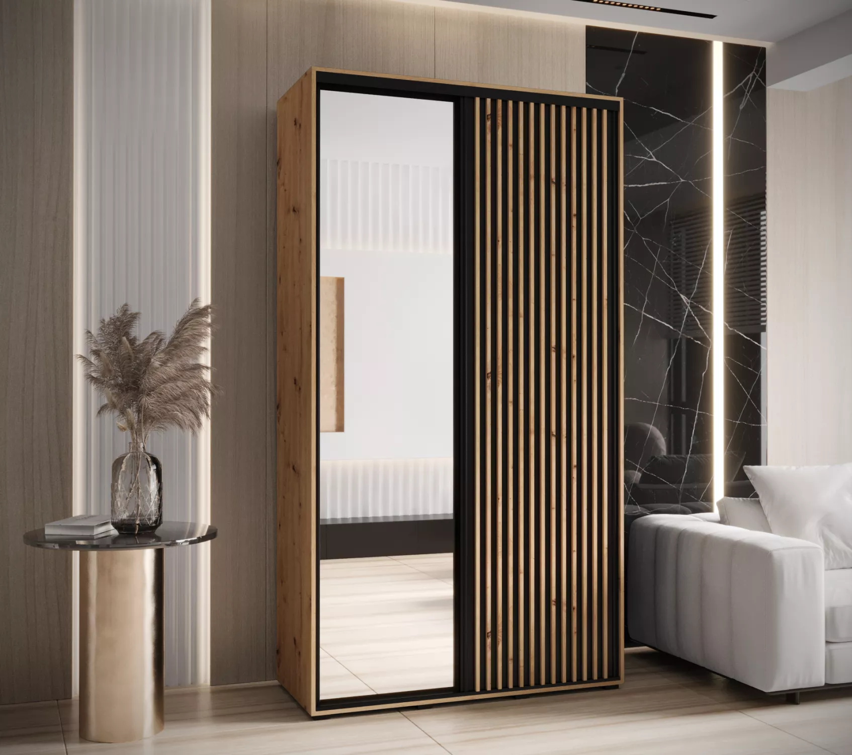 Šatníková skriňa BAYLIN 2 - 140/45 cm, dub artisan / čierna / dub artisan