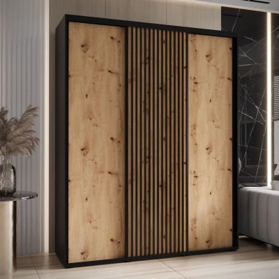 Šatníková skriňa BAYLIN 1 - 200/60 cm, čierna / dub artisan / čierna
