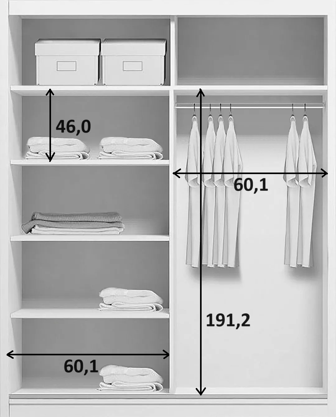 Dvojdverová šatníková skriňa ELIANA sa skvele hodí do všetkých moderných interiérov. Praktické posuvné dvere oceníte v boji s nedostatkom miesta. Vnútri skrine sú police a šatníková tyč.