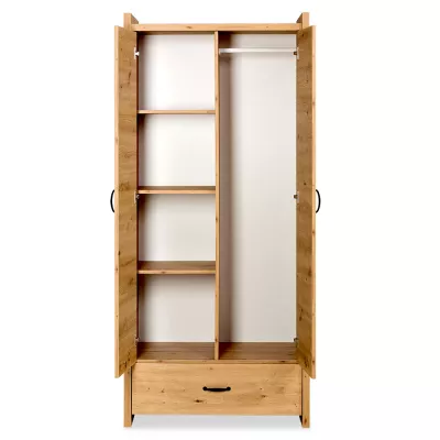 Šatníková skriňa ALABANA sa hodí do všetkých detských izieb. Skriňa je vybavená policami, šatníkovými tyčami a šuplíkom.