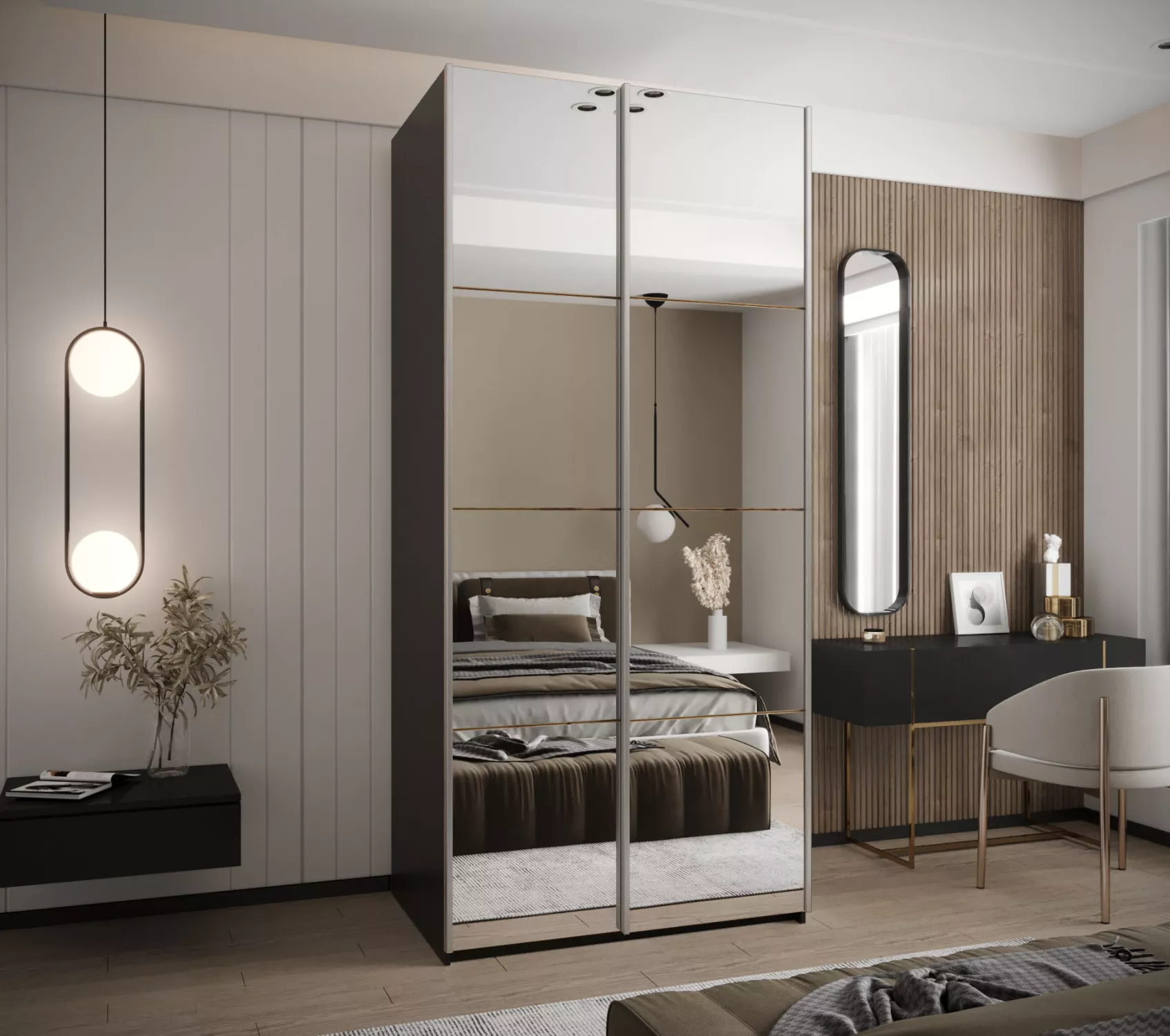 Šatníková skriňa SAMARA 2 – 120 predstavuje spojenie elegancie a funkčnosti. Ponúka dostatok úložného priestoru v podobe policového systému a 2 šatníkových tyčí.