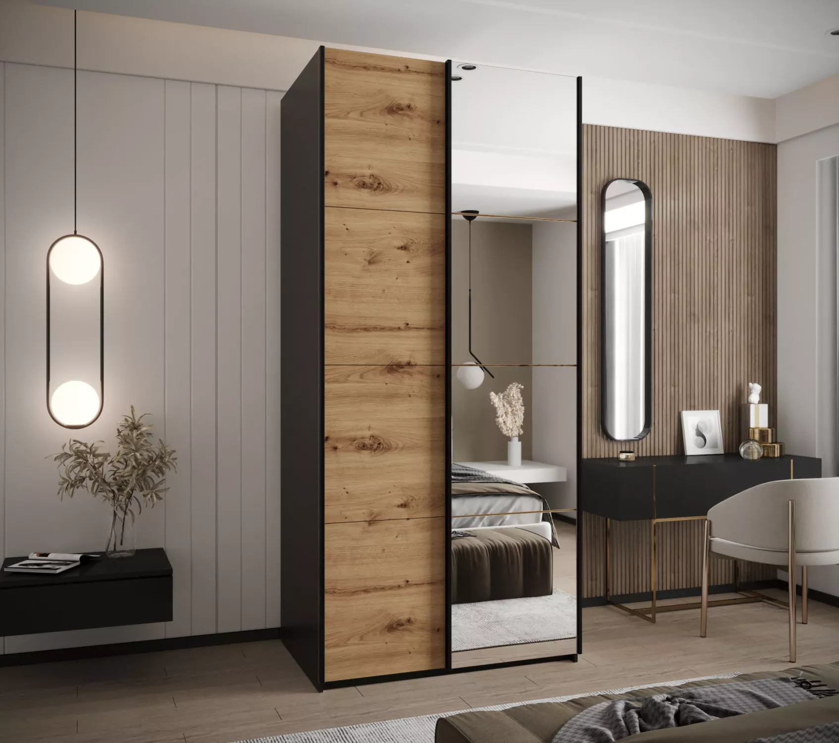 Dvojdverová skriňa SAMARA 3 - 110 cm, čierna / dub artisan / čierna