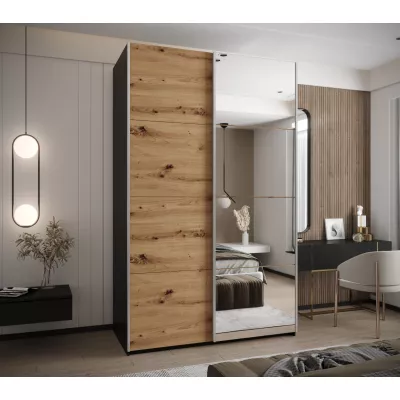 Dvojdverová skriňa SAMARA 3 - 160 cm, čierna / dub artisan / strieborná