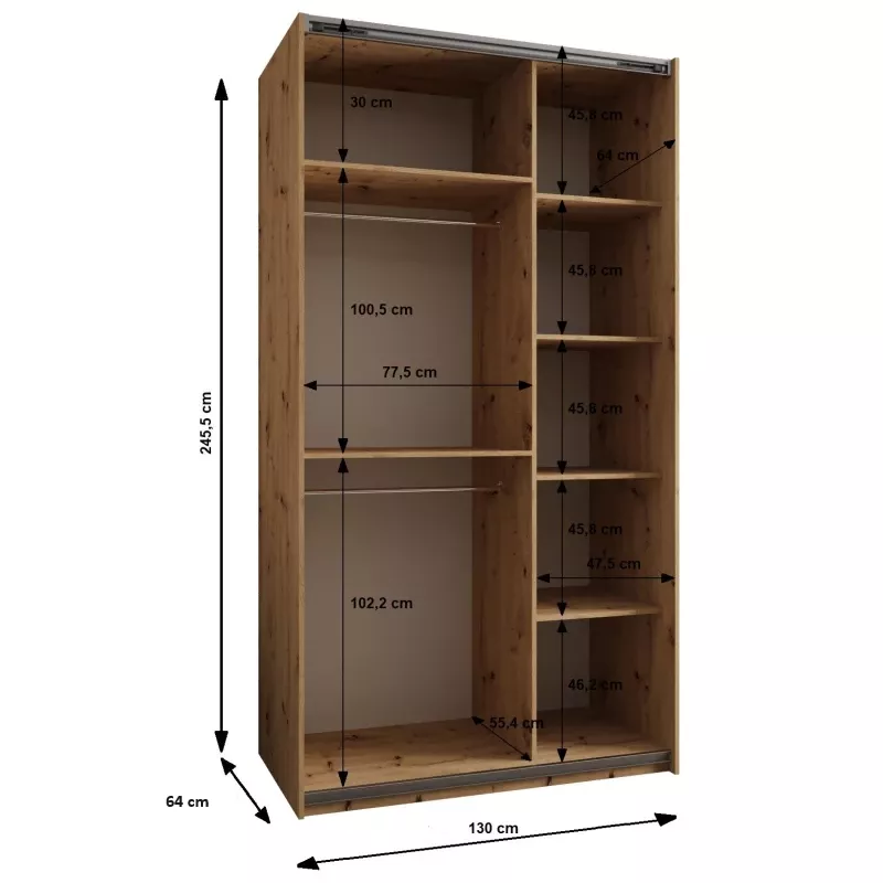 Dvojdverová skriňa SAMARA 4 predstavuje spojenie elegancie a funkčnosti. Ponúka dostatok úložného priestoru v podobe policového systému a 2 šatníkových tyčí.