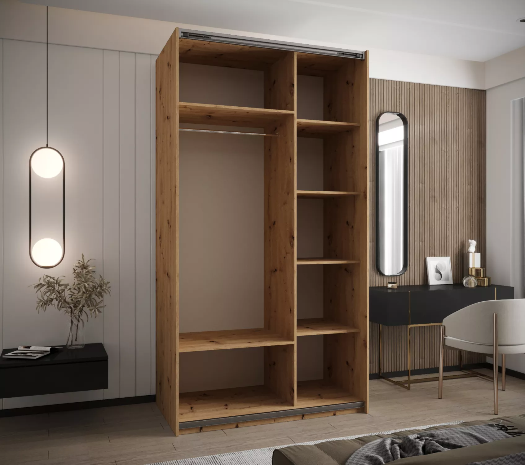 Dvojdverová skriňa SAMARA 4 predstavuje spojenie elegancie a funkčnosti. Ponúka dostatok úložného priestoru v podobe policového systému a 2 šatníkových tyčí.