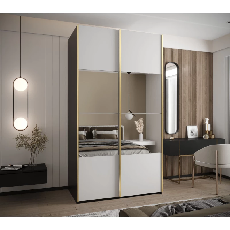 Dvojdverová skriňa SAMARA 4 - 140 cm, čierna / biela / zlatá