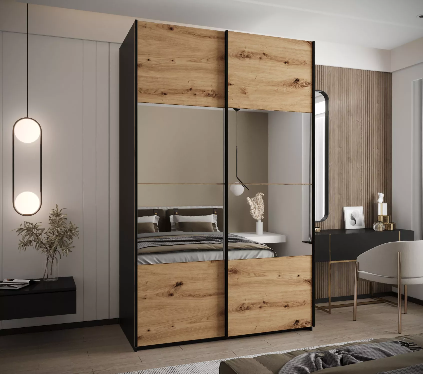Dvojdverová skriňa SAMARA 4 - 150 cm, čierna / dub artisan / čierna