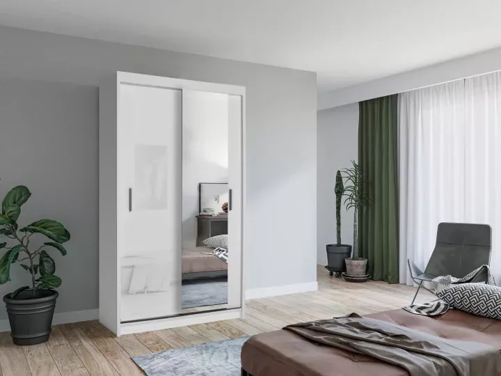 Šatníková skriňa so zrkadlom 120/62 KAILAN - biela matná / biela lesklá