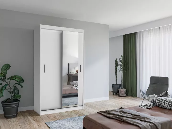 Šatníková skriňa so zrkadlom 120/62 KAILAN - biela matná