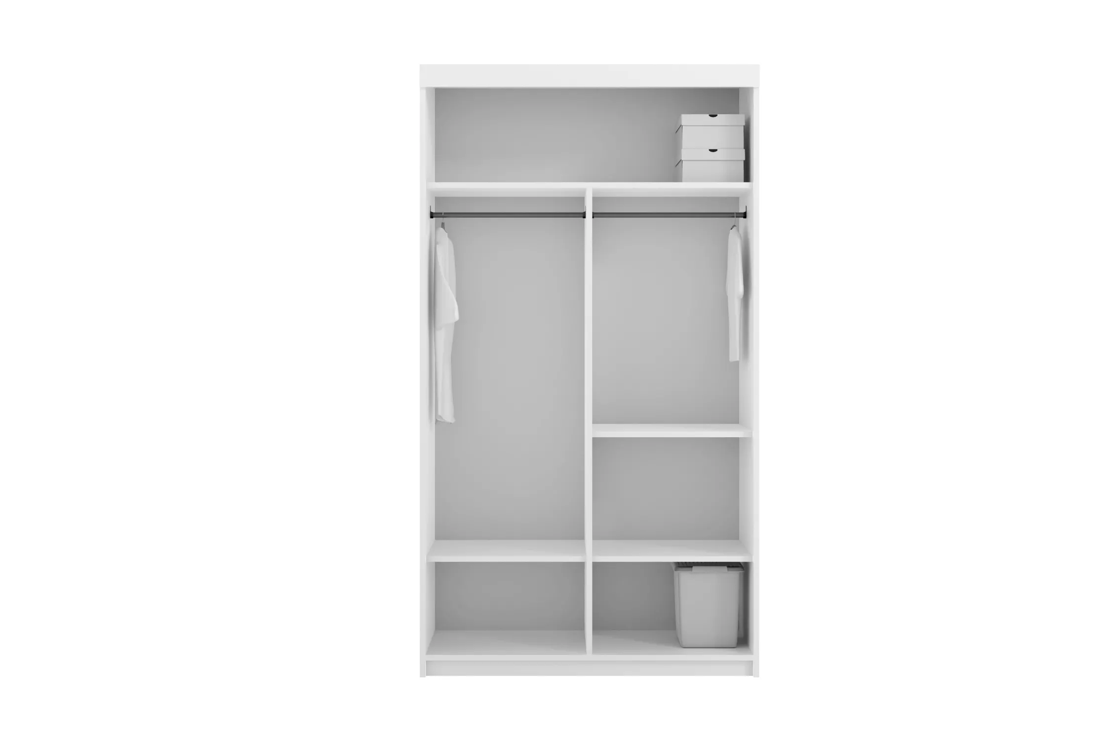 Šatníková skriňa so zrkadlom KAILAN predstavuje spojenie elegancie a funkcionality. Vnútorné usporiadanie skrine je možné ľubovoľne meniť a vytvára tak dostatok úložného priestoru v podobe šatníkových tyčí a políc.