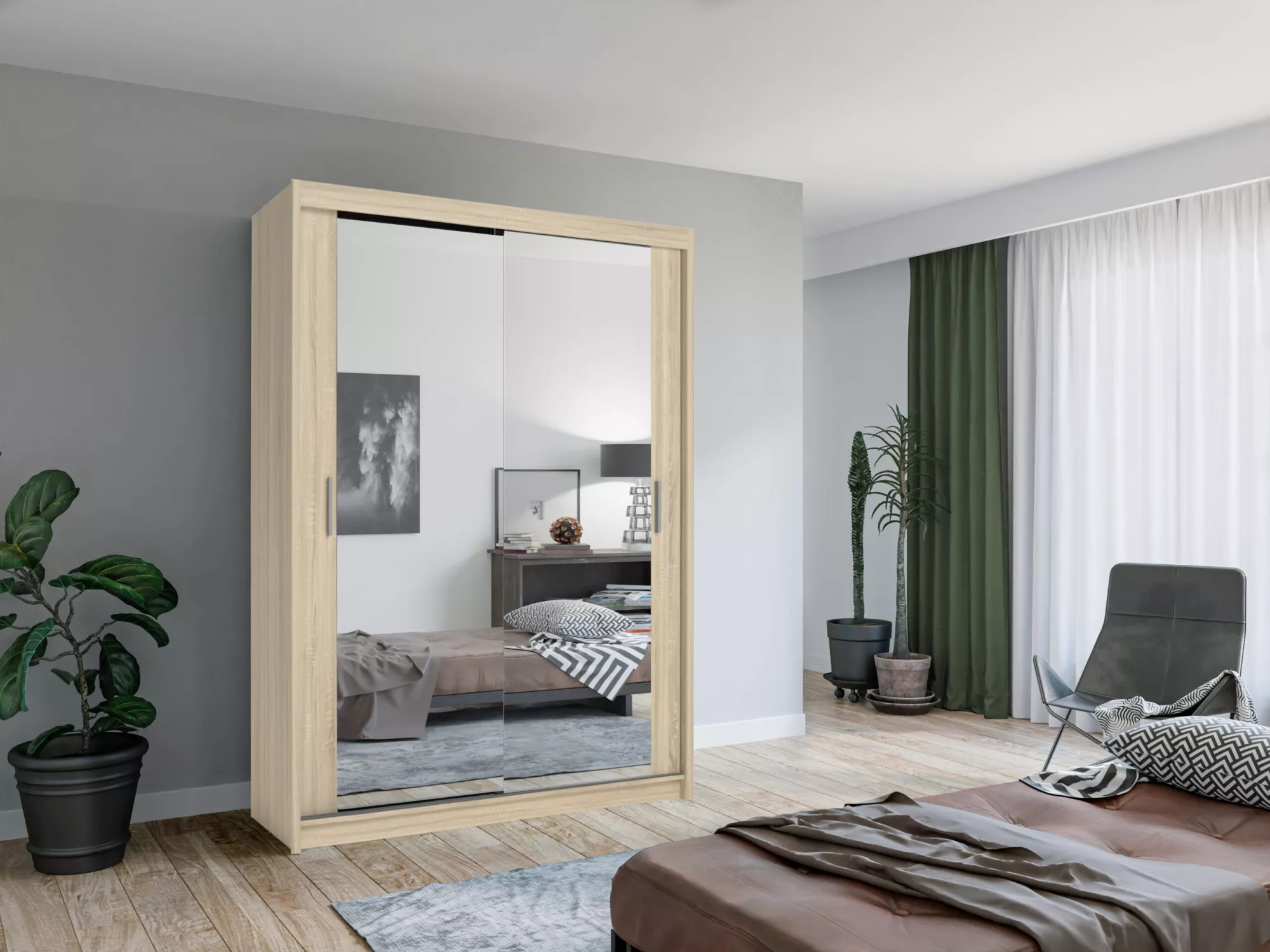 Zrkadlová šatníková skriňa 150/62 KAILAN - dub sonoma