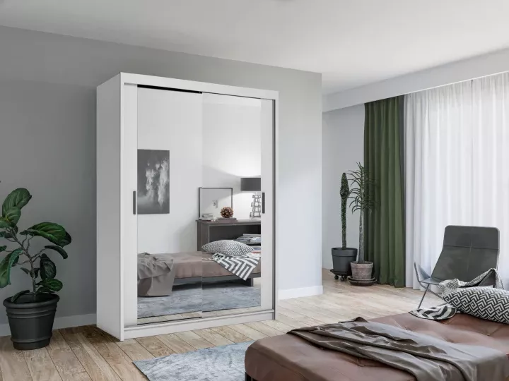 Zrkadlová šatníková skriňa 150/62 KAILAN - biela