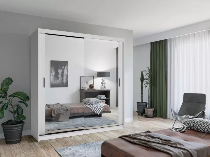 Zrkadlová šatníková skriňa 203/62 KAILAN - biela