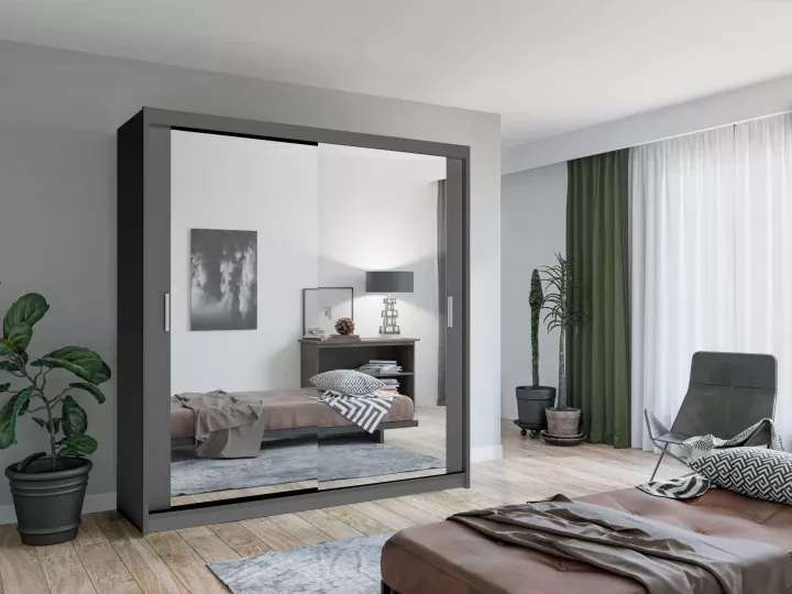 Zrkadlová šatníková skriňa 203/62 KAILAN - šedá