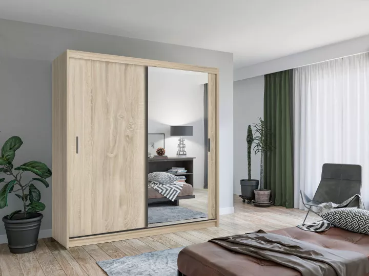 Šatníková skriňa so zrkadlom 203/62 KAILAN - dub sonoma