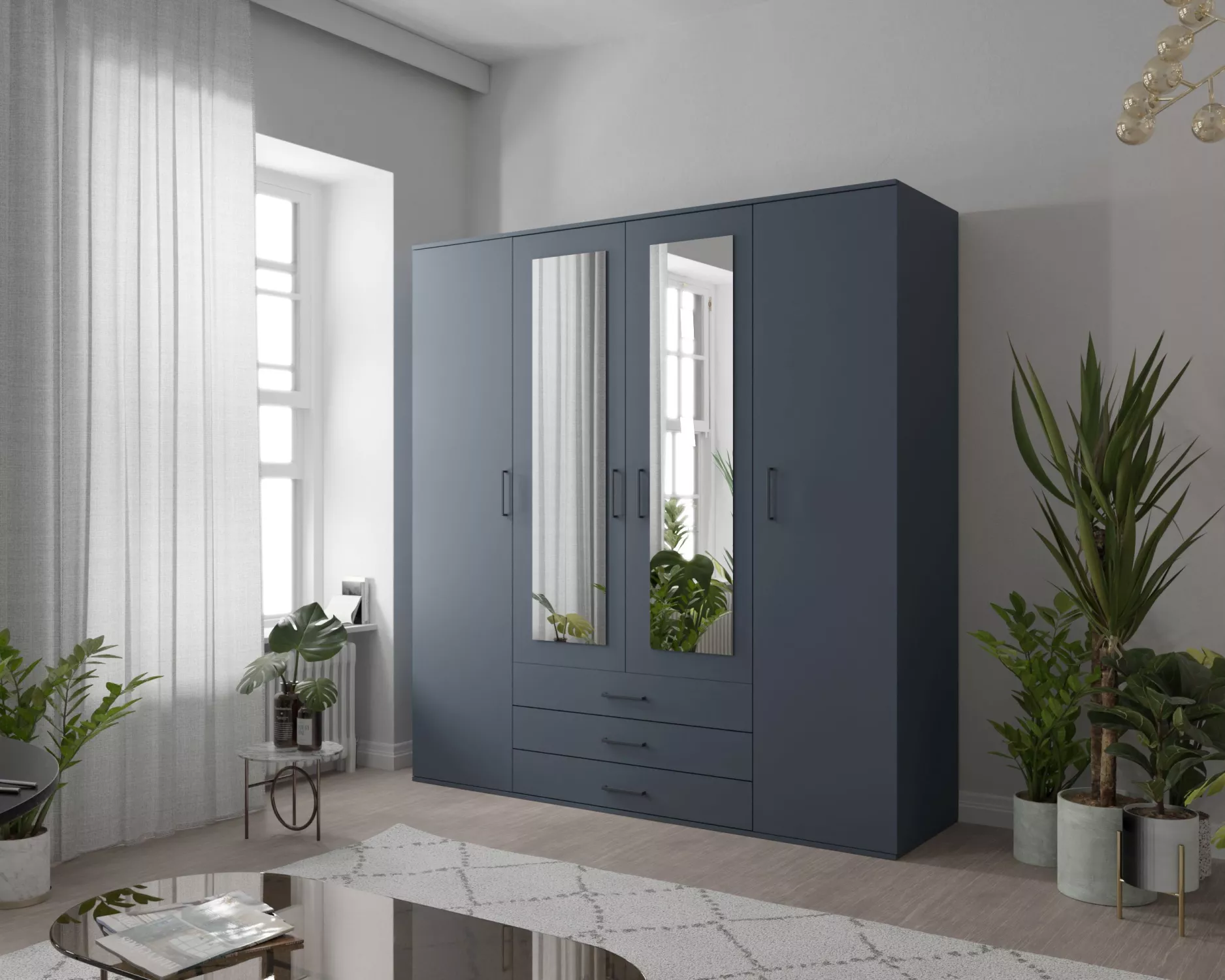 Štvordverová šatníková skriňa 200/58 JUNILA - modrá