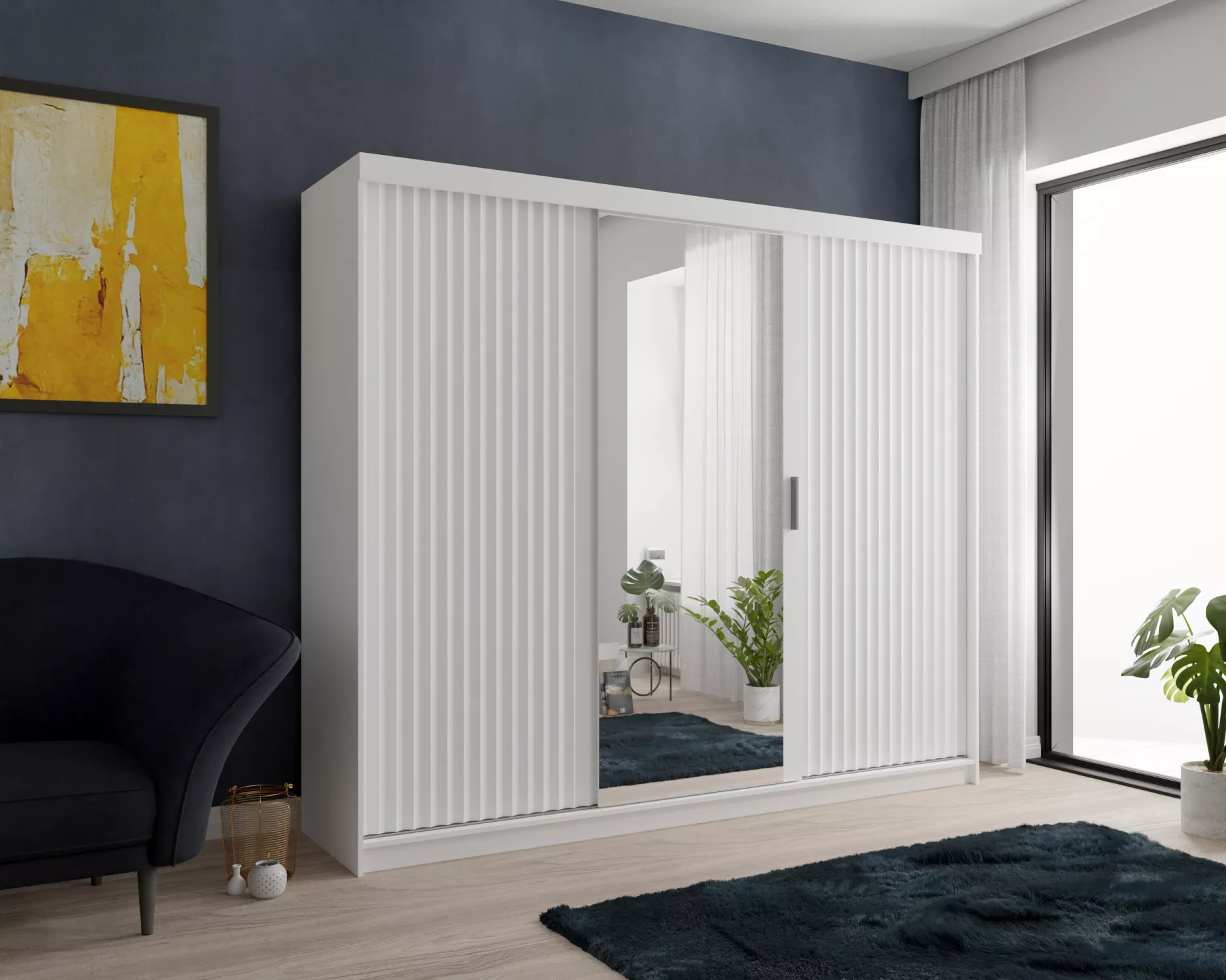 Šatníková skriňa so zrkadlom 250/62 TEDRA - biela
