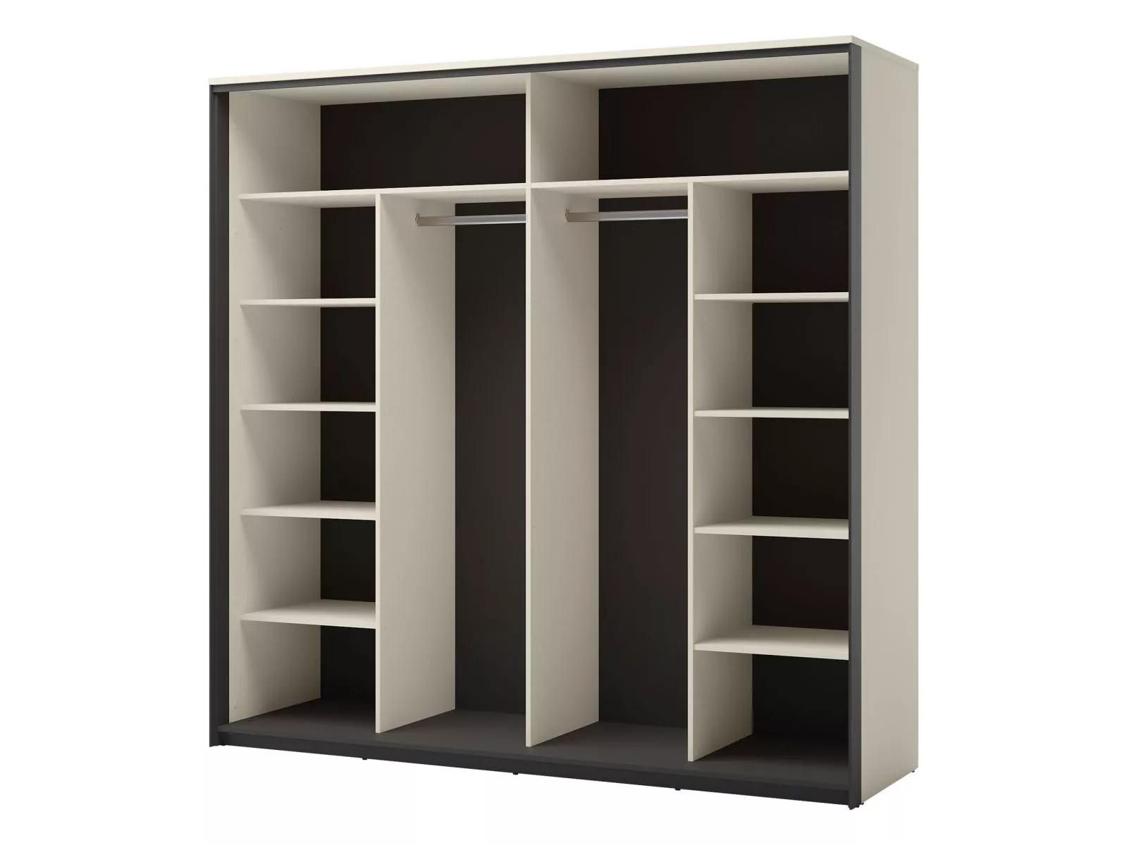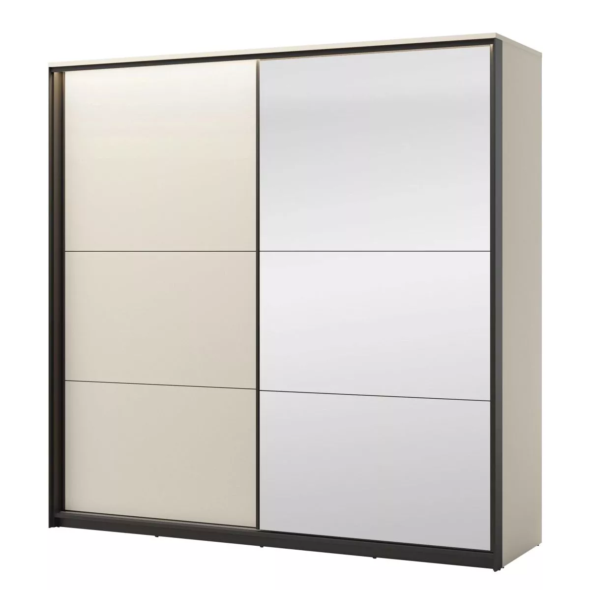Široká zrkadlová šatníková skriňa 220 cm REDMOND - piesková béžová / čierna + LED osvetlenie ZDARMA