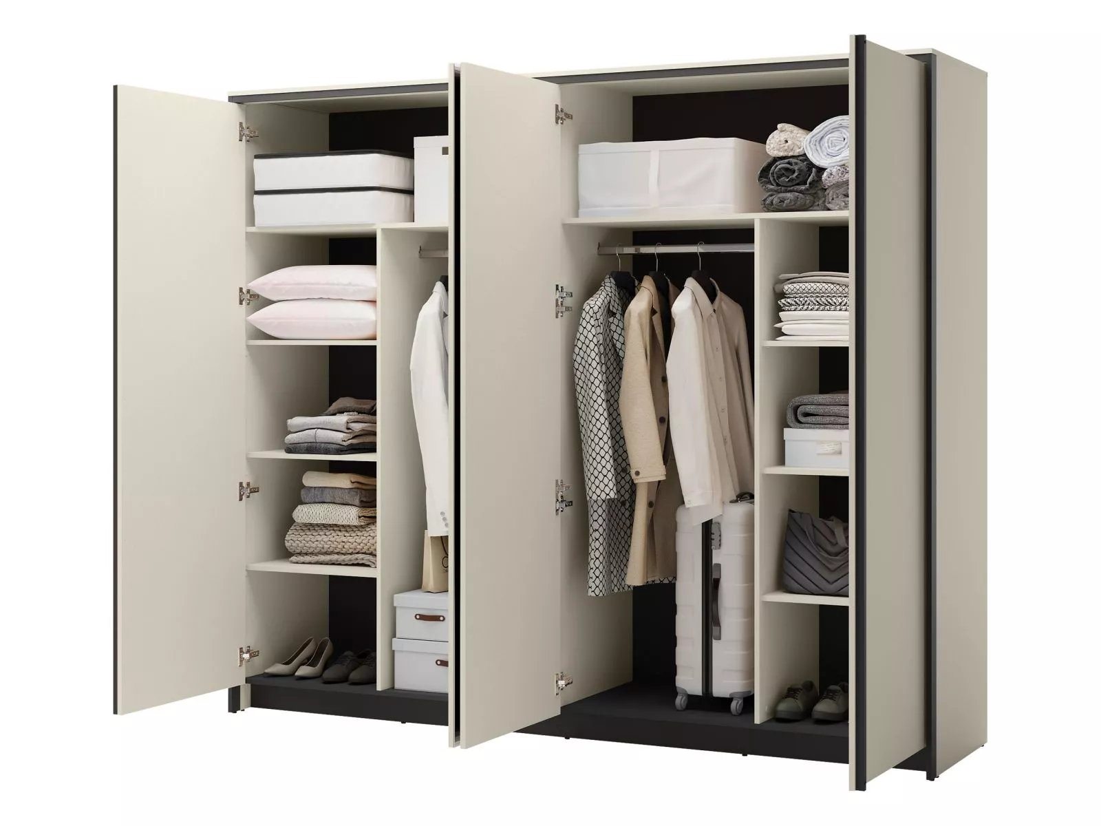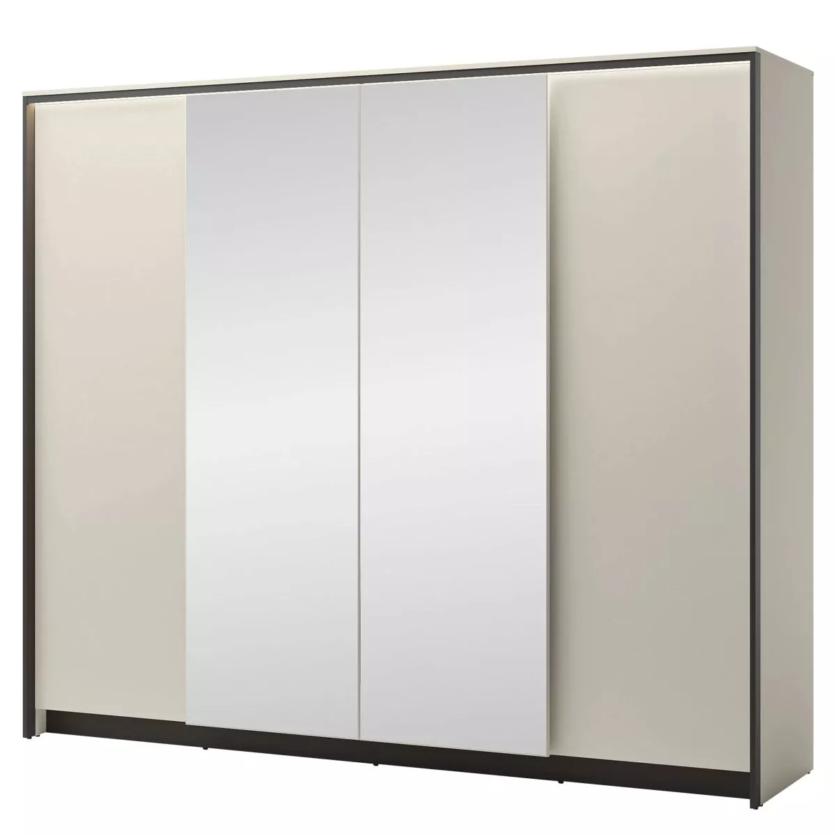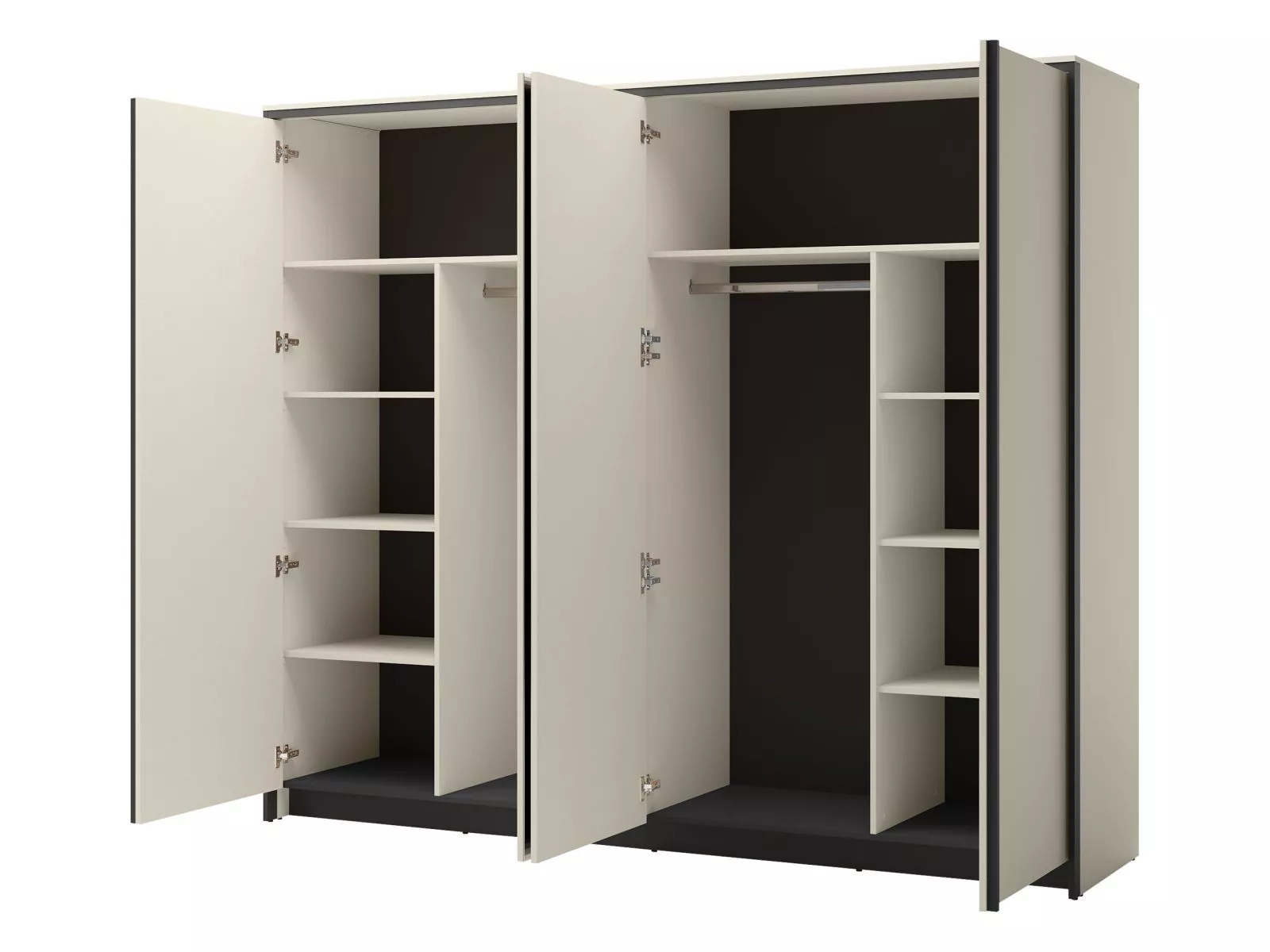 Veľká zrkadlová šatníková skriňa 251 cm REDMOND - piesková béžová / čierna + LED osvetlenie ZDARMA