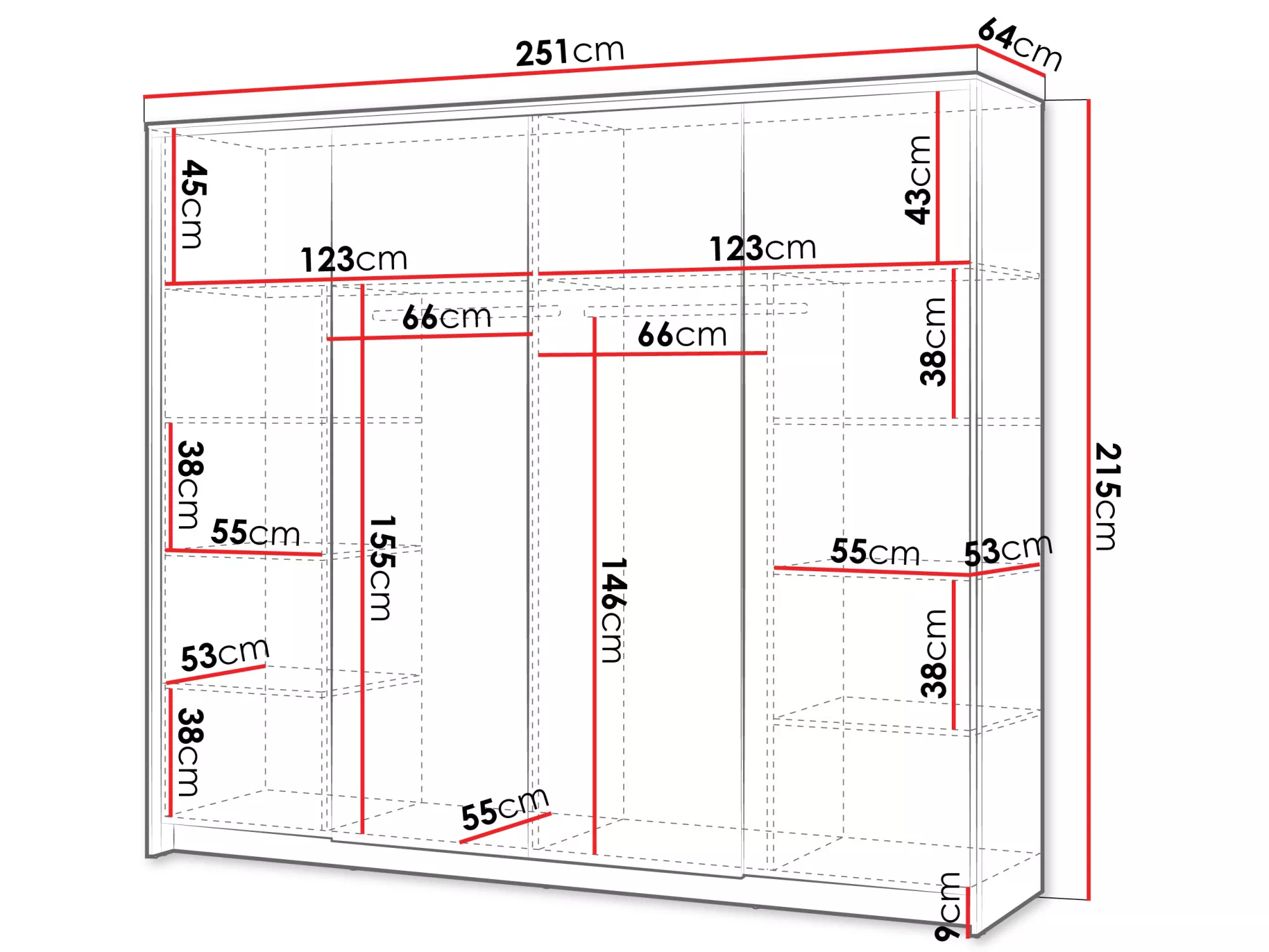 Objavte zrkadlovú šatníkovú skriňu REDMOND, ktorá spája moderný štýl a premyslené usporiadanie. Zrkadlové dvierka opticky zväčšia priestor a spríjemnia každodenné prípravy. Vnútri sa nachádzajú 2 šatníkové tyče aj priestranné police, vďaka ktorým bude oblečenie vždy prehľadne usporiadané. Vstavané LED osvetlenie dodá skrini pôsobivý efekt a uľahčí používanie aj po zotmení.