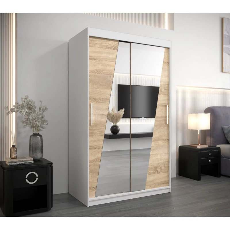 Moderná skriňa so zrkadlovými dverami Kamila 120 vo farbe biela - dub sonoma