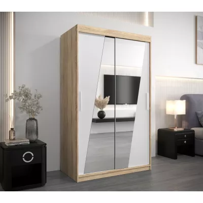 Moderná skriňa so zrkadlovými dverami Kamila 120 vo farbe dub sonoma-biela