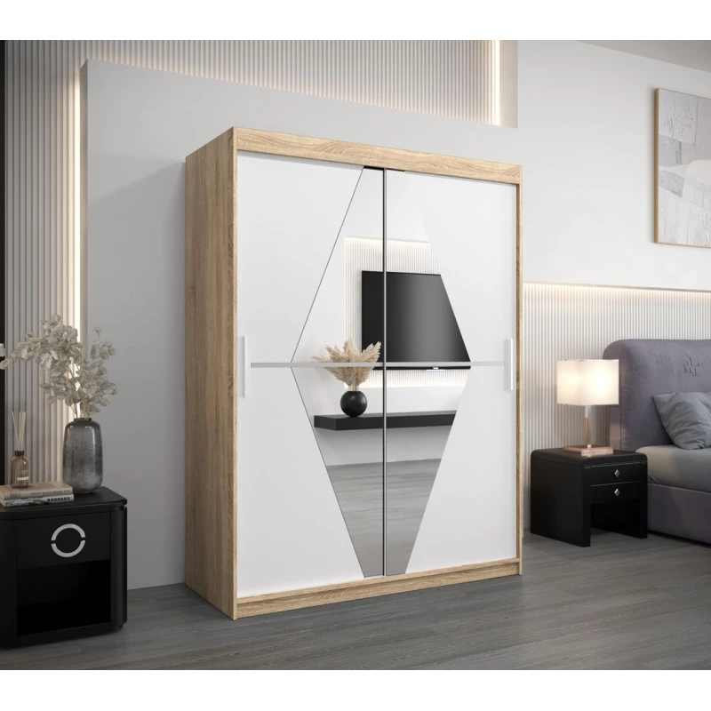 Skriňa SARA v modernom štýle sa hodí do akéhokoľvek interiéru. Vďaka jednoduchému vzhľadu bude vaša domácnosť pôsobiť vzdušne a presvetlene. Vďaka posuvným dverám je skriňa vhodná aj pre menšie miestnosti. Skriňa je vyrobená z laminovaného dreveného materiálu, ktorý je nenáročný na údržbu. Povrchová úprava je matná a predná časť je doplnená praktickými zrkadlami.