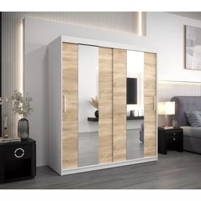 Priestranná skriňa s posuvnými dverami a zrkadlami Karin 180 vo farbe biela - dub sonoma