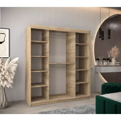 Priestranná skriňa s posuvnými dverami a zrkadlami Regína 180 vo farbe dub sonoma