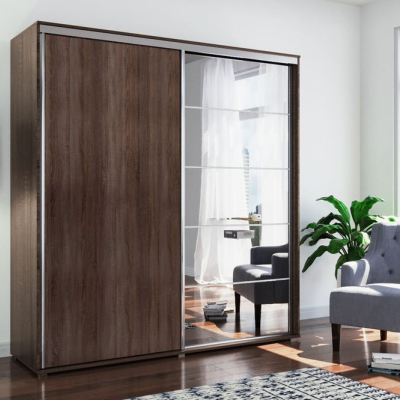Šatníková skriňa Jacobo predstavuje kvalitný doplnok do modernej spálne alebo predsiene. Okrem jedinečného dizajnu ponúka mnoho miesta na uloženie oblečenia. Skriňa disponuje posuvnými dverami na kvalitných hlinikových lištách, otváranie dverí je tak hladké a plynulé. Skriňa nemá žiadne výrazné úchytky, dvere sa otvárajú pomocou líšt umiestnených po bokoch. Vo vnútri skrine sú police a šatníková tyč.