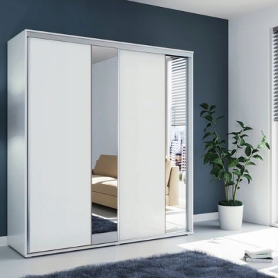 Priestranná zrkadlová šatníková skriňa 125/245 ANTONIO - biela