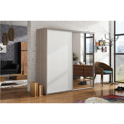 Priestranná šatníková skriňa so zrkadlom 175/215 HUGO - dub sonoma / biela