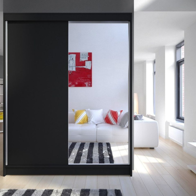 Zrkadlová šatníková skriňa CHANNA 1 - čierna