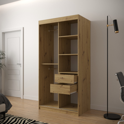 Šatníková skriňa s grafikou JANETTE 2 - šírka 100 cm, dub artisan / biela