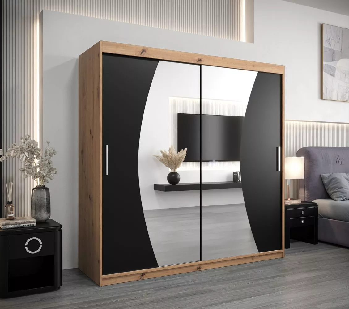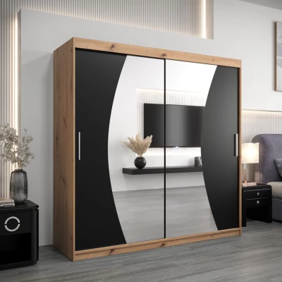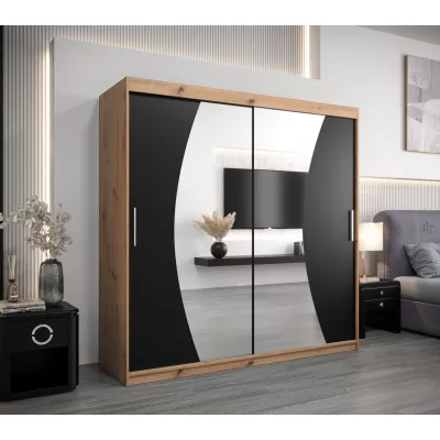 Skriňa s posuvnými dverami JASMINA - 200 cm, dub artisan / čierna