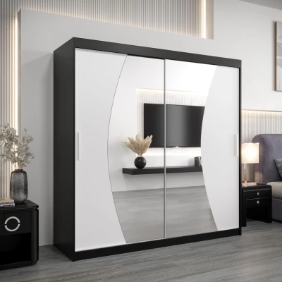 Skriňa s posuvnými dverami JASMINA - 200 cm, čierna / biela