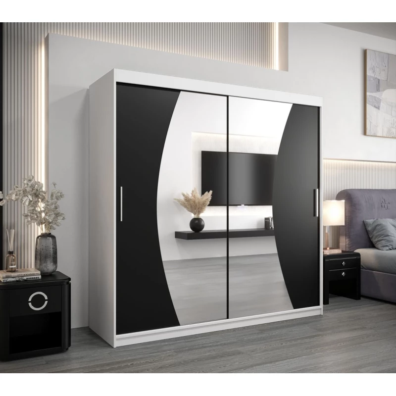 Skriňa s posuvnými dverami JASMINA - 200 cm, biela / čierna