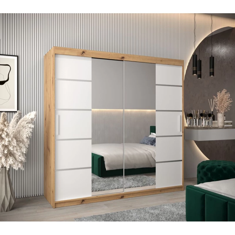 Skriňa so zrkadlami VIVIEN - šírka 200 cm, dub artisan / biela